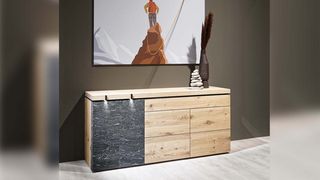 Vrock vereint die archaische Bergwelt mit der modernen, puristischen Formensprache. Durch die Kombination aus der Alteiche rustiko gebürstet und dem schwarzgrauen schroffen Alpengranit Stein, welcher mit viel handwerklicher Raffinesse bearbeitet ist, bringt Vrock ein echtes alpines Lebensgefühl in den Wohnraum.