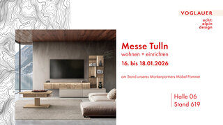Vom 16. bis 18. Jänner 2026 findet in Tulln die Messe "wohnen + einrichten" statt. Am Stand unseres Markenpartners "MÖBEL POMMER" könnt ihr dort vor Ort auch unsere VOGLAUER Möbel entdecken.