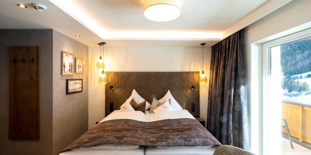 The focus of the VOGLAUER interior designers and the clients was on a modern-alpine style for the rooms & suites. Elegance and comfort form a perfect synthesis. Earth tones were combined with violet accents, and in terms of materials, the high-quality rustic oak wood harmonises with fine marbled fabrics. A well thought-out lighting concept, consisting of decorative lights and indirect light coves, which give the room orientation and atmosphere, ensures the feel-good ambience.